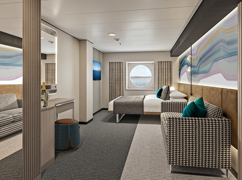 Designed to blend both indoor and outdoor experiences with stunning views of the ocean through grandiose floor-to-ceiling windows for panoramic views from the ship’s bow.